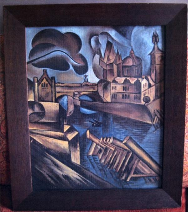kubismus z roku 1925,olej na kartonu č.220a